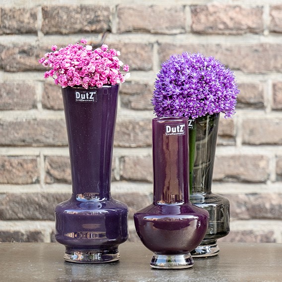 Met de mooie smalle vaas van DUTZ kan je alle kanten op. Je kan hem combineren maar ook alleen voor een enkele bloem erg handig. De vaas is met de mond geblazen en van goede kwaliteit.